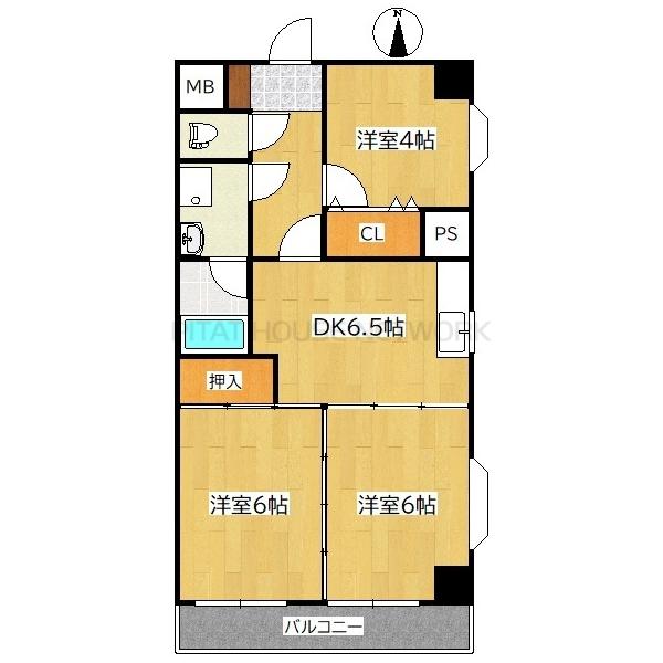 | 間取り詳細 | 洋6帖 洋6帖 洋4帖 DK6.5帖 |