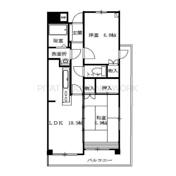 | 間取り詳細 | 和6帖 洋6.8帖 LDK10.3帖 |